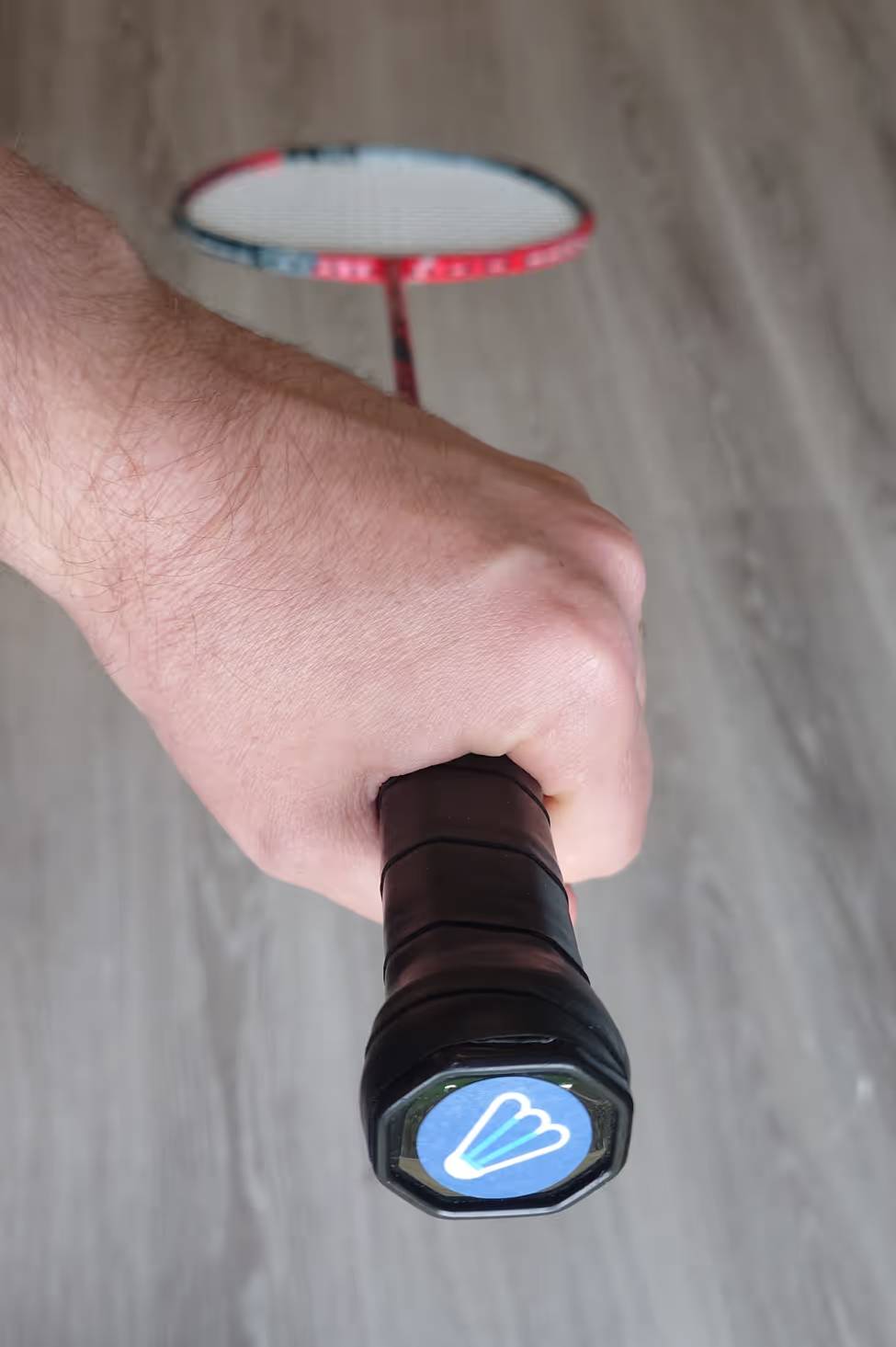 Stick the NFC sticker to a convenient location, such as the base of a badminton racket.