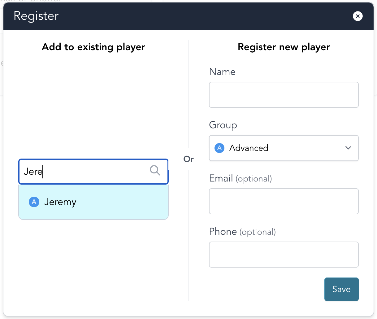 Registering players with NFC stickers and cards
