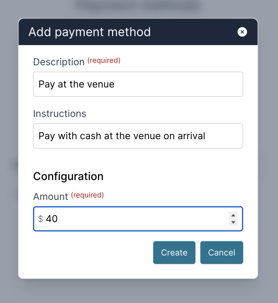 You can also set up payment options for your tournament. MixItOne supports various payment methods, depending on your location. You can choose more than one payment method and set a price for each method.